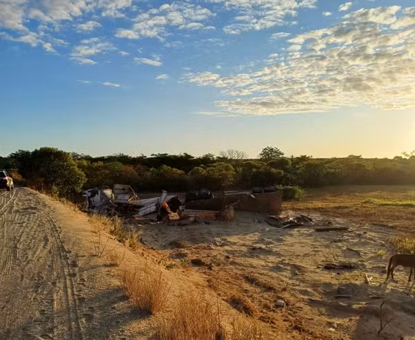 Durante a retirada do milheto, um dos semirreboques da carreta tombou por cima de dois homens. Uma das vítimas, um homem de 45 anos, morreu ainda no local. Outro homem foi levado ao Hospital pelo Serviço de Atendimento Móvel de Urgência (SAMU).